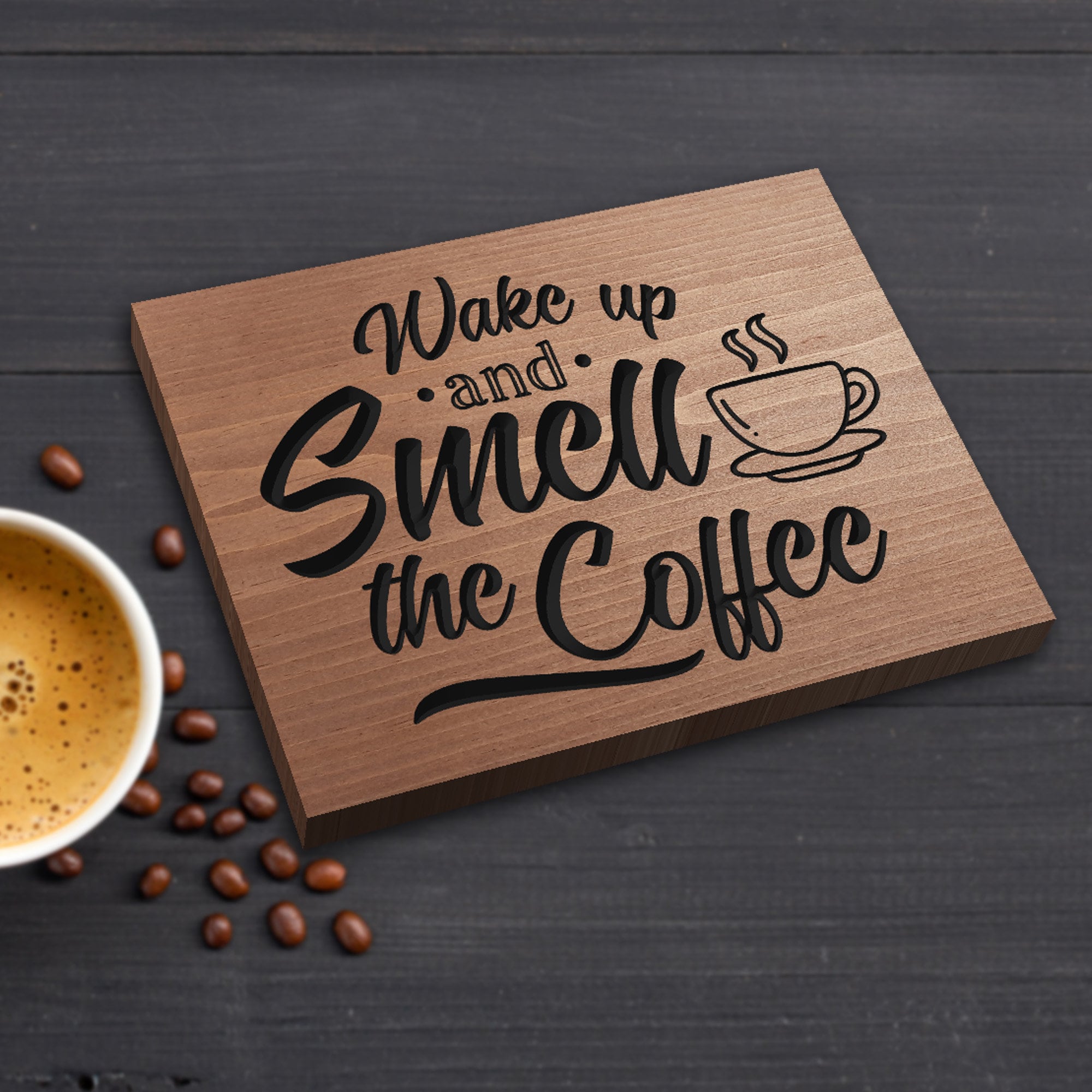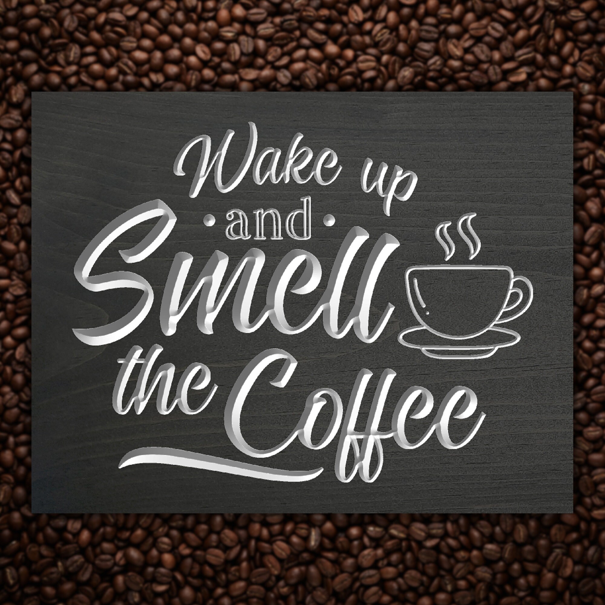 Wake Up And Smell The Coffee sign is exactly as described. The color is perfect. Outstanding material, quality, and workmanship! The sign will be perfect on my coffee bar. Nicholas provided excellent customer service by providing updates, shipping and delivery information. Exceeded my expectations. I will shop here again in the future. I highly recommend this shop.