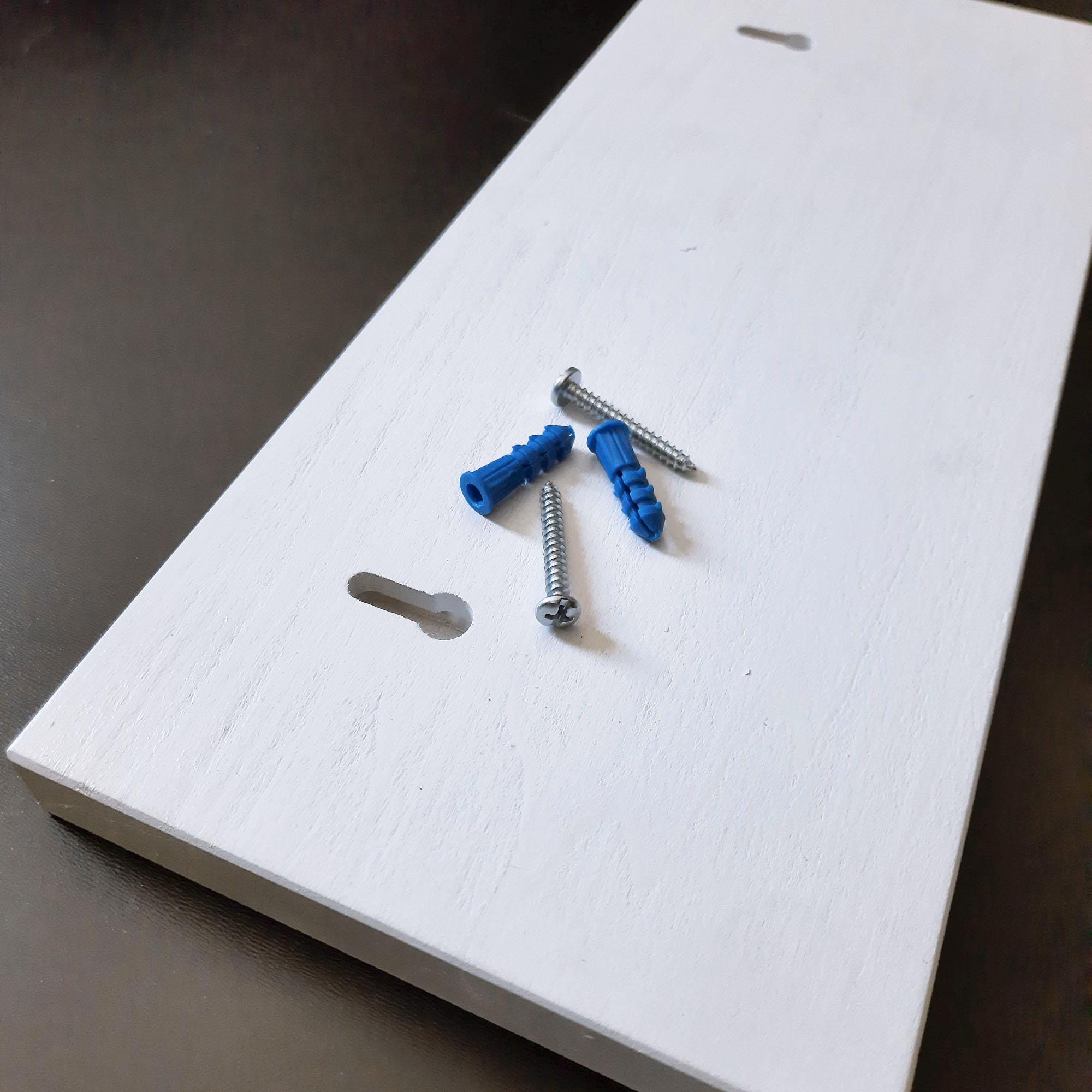 • Includes Keyhole Slots, Screws and Anchors for mounting (see photo)